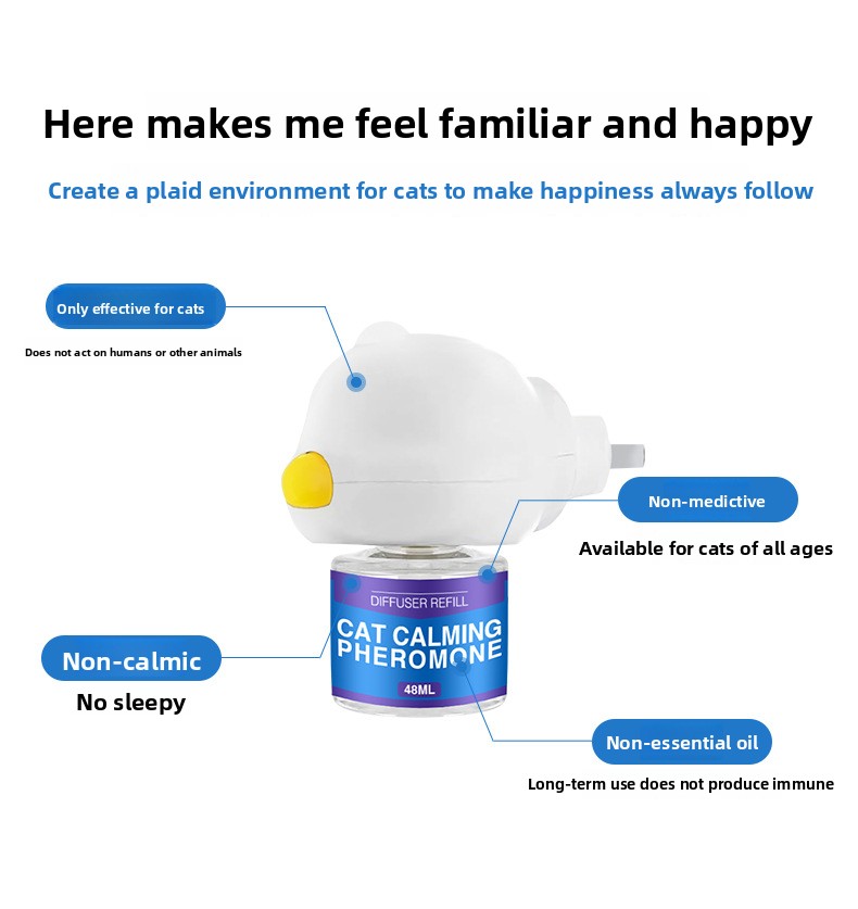 • Easy to Use: Simple plug-in diffuser design for continuous release of calming pheromones.