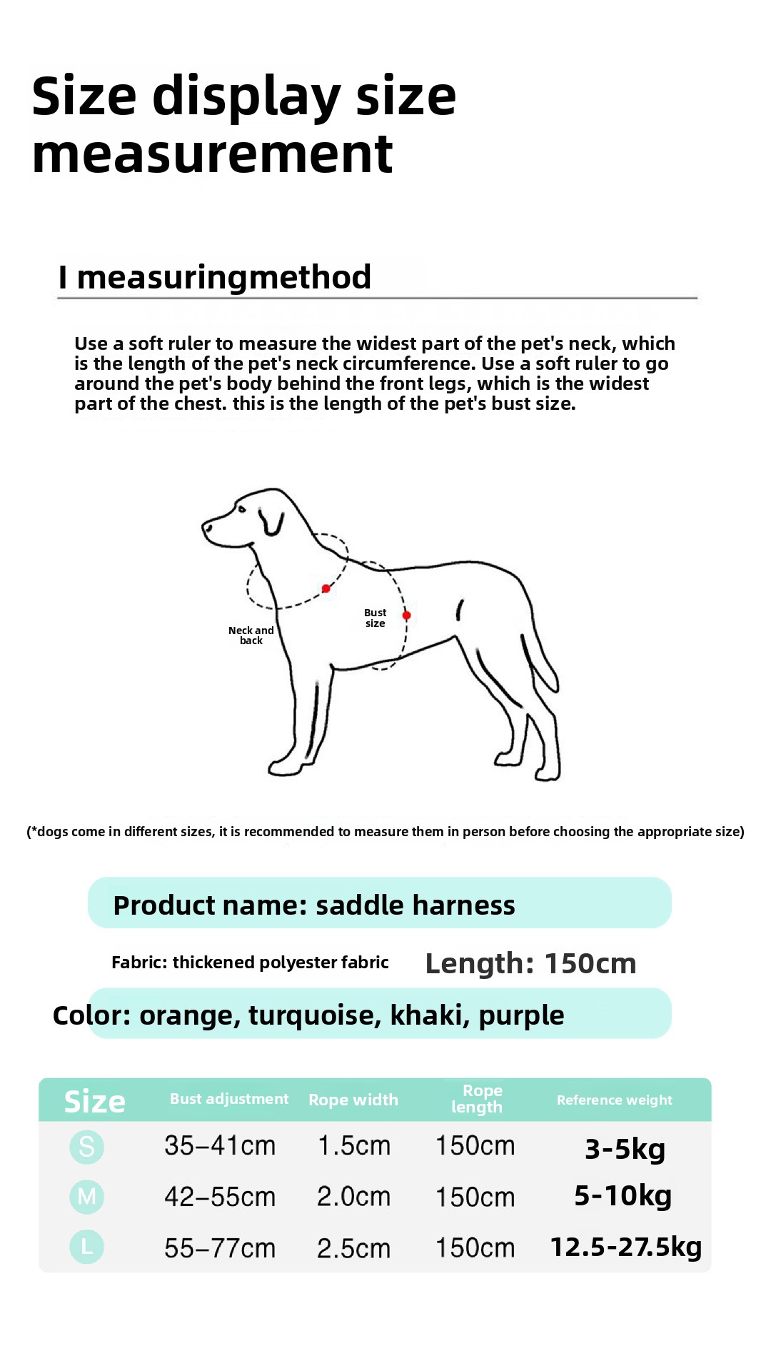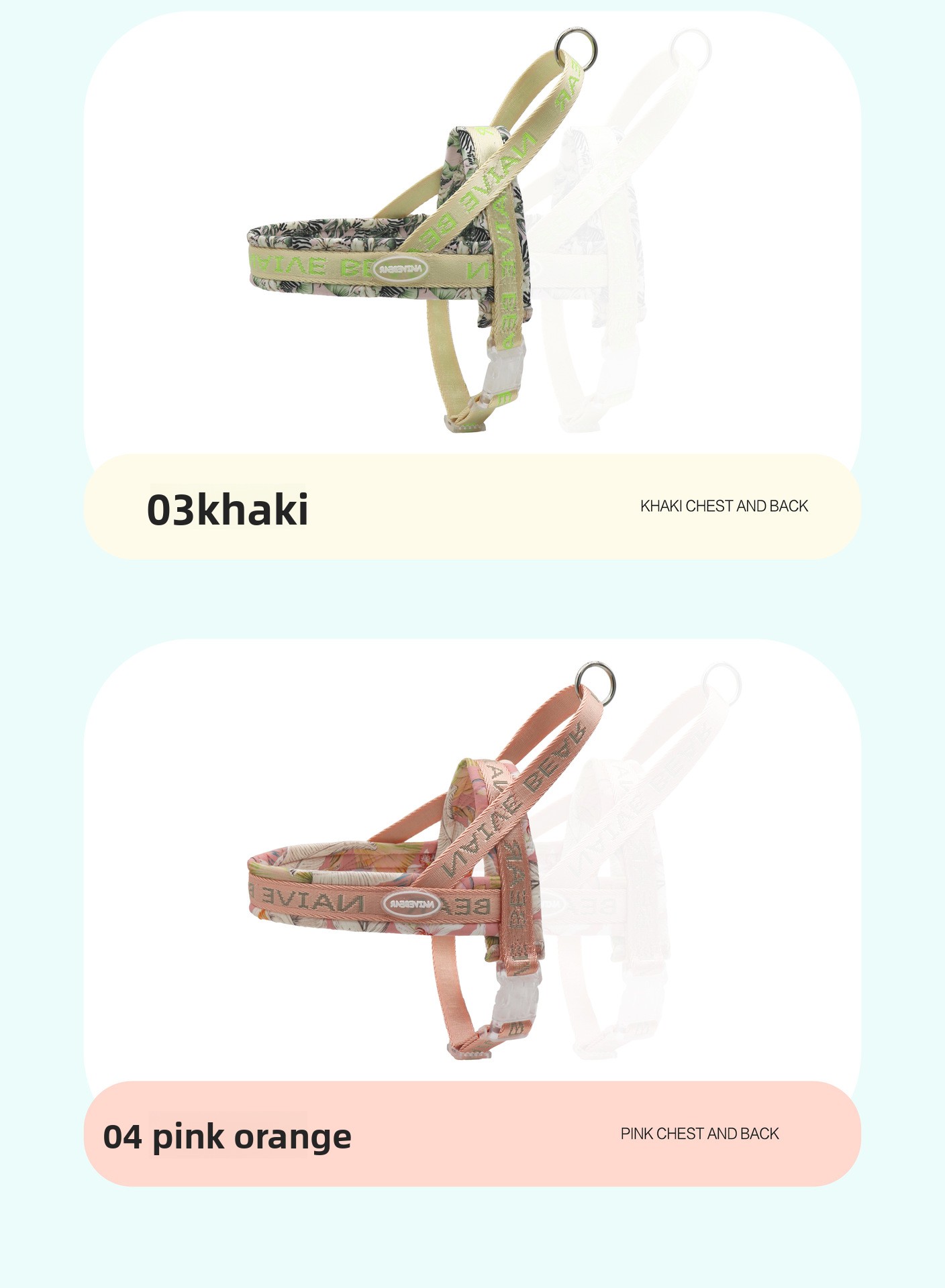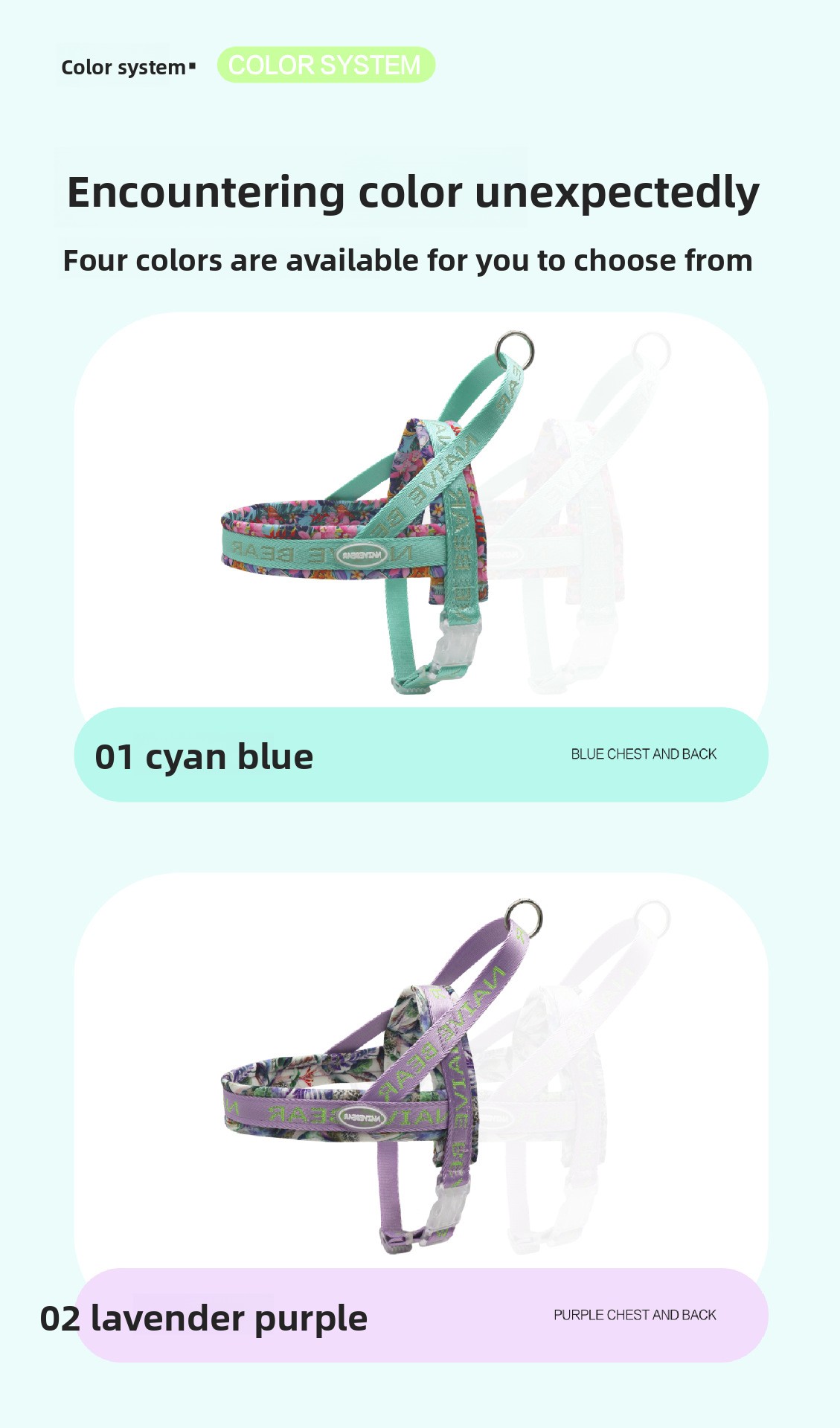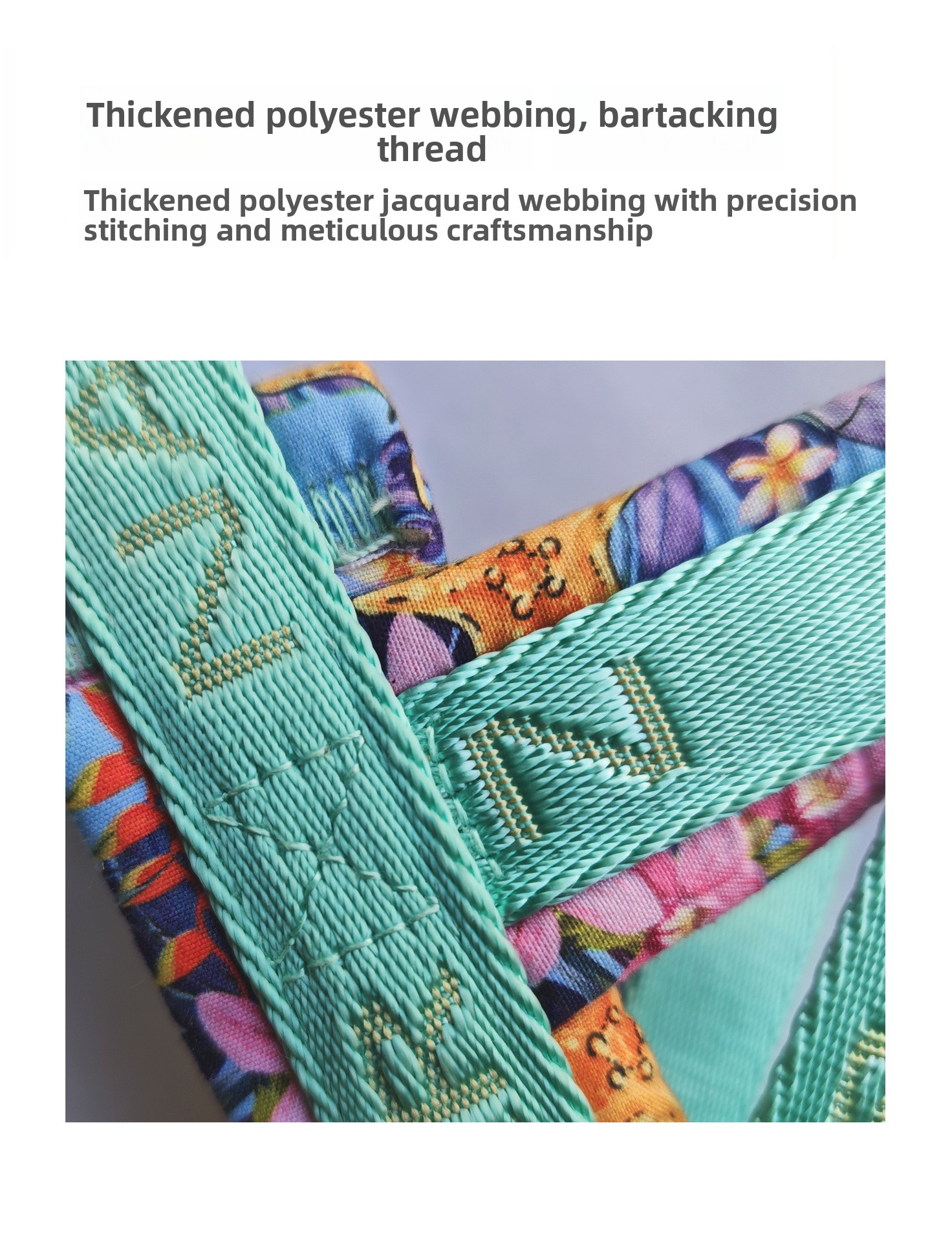 Printed saddle (harness + leash): Cyan blue, pink-orange, khaki, lavender purple