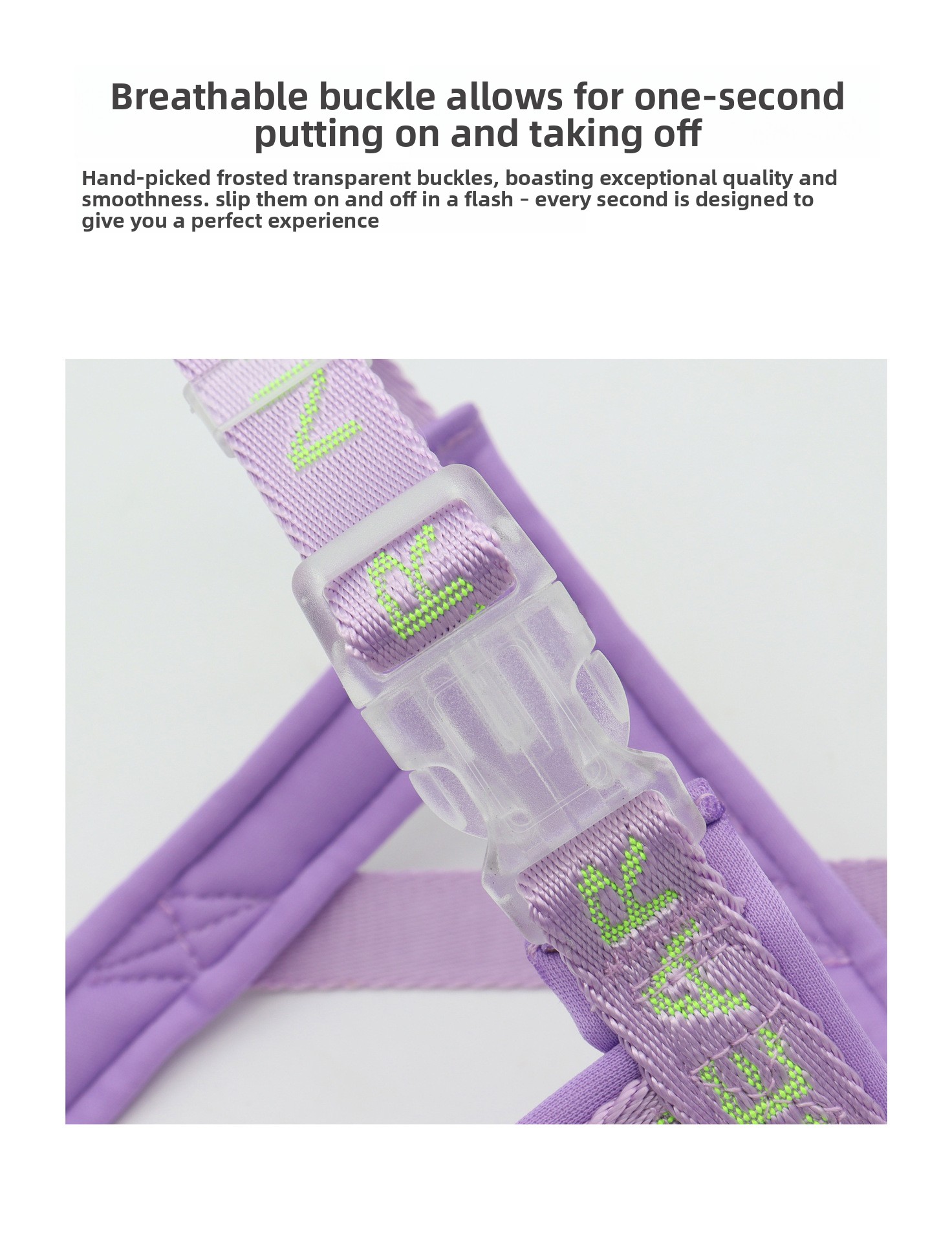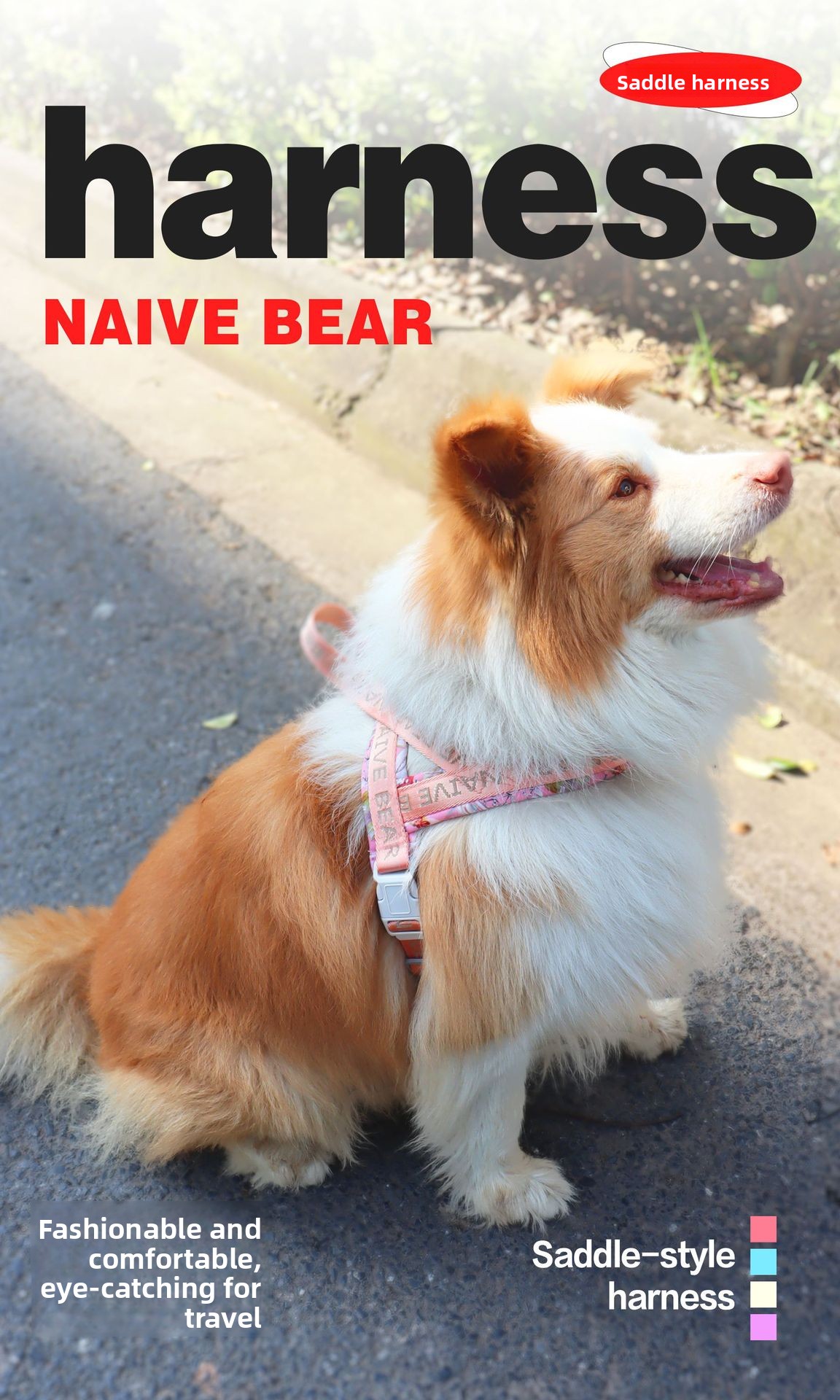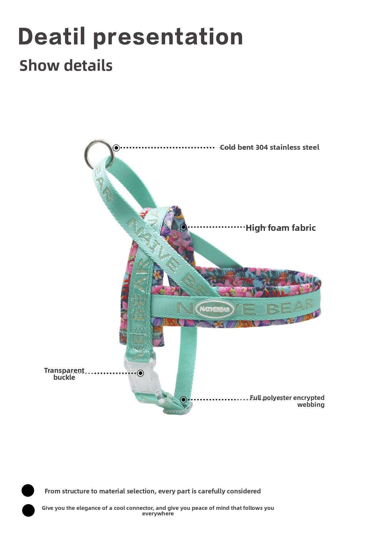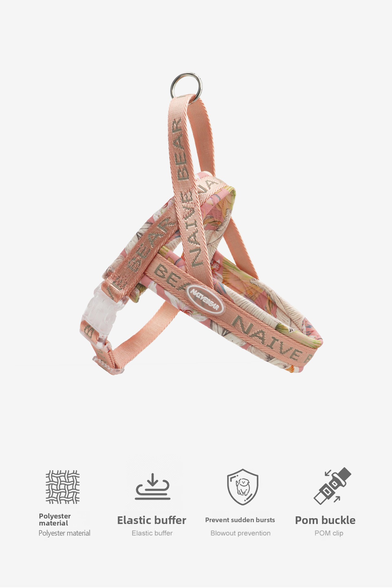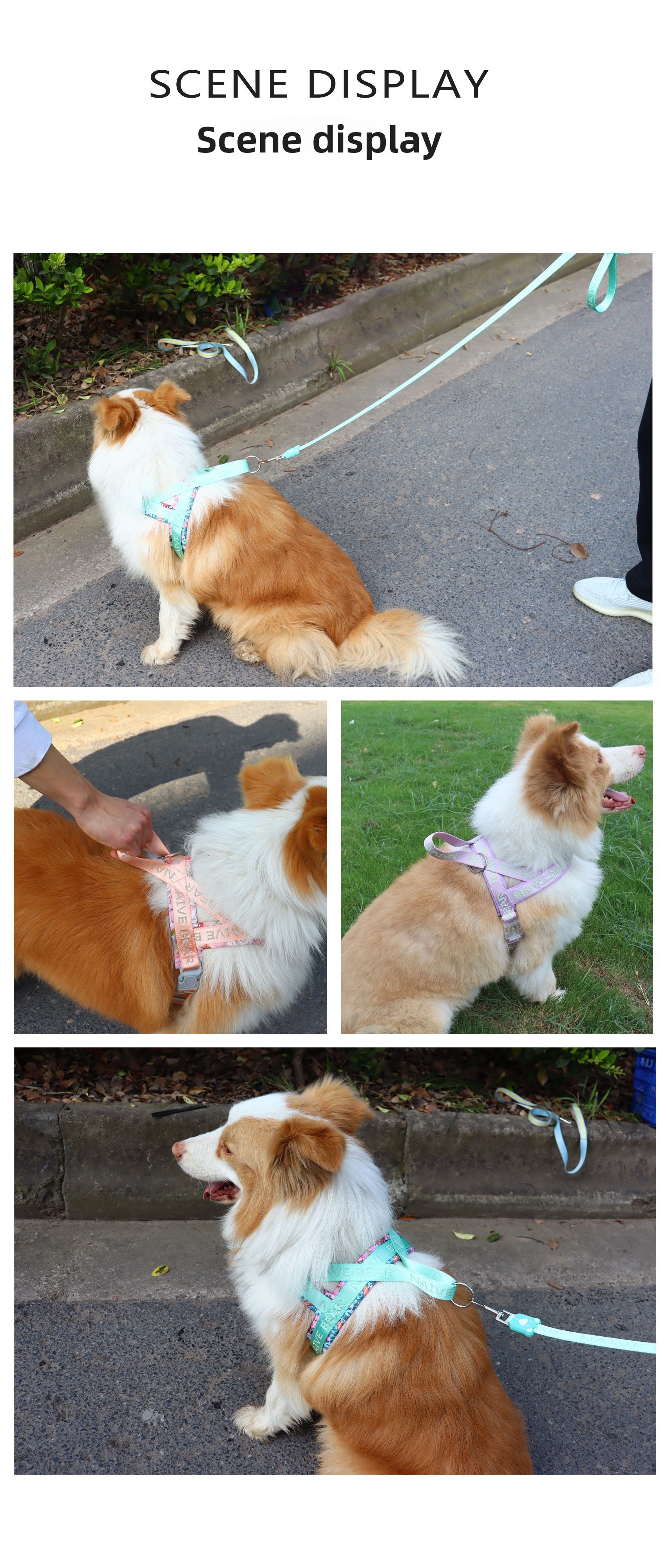 Printed saddle (harness + leash): Cyan blue, pink-orange, khaki, lavender purple