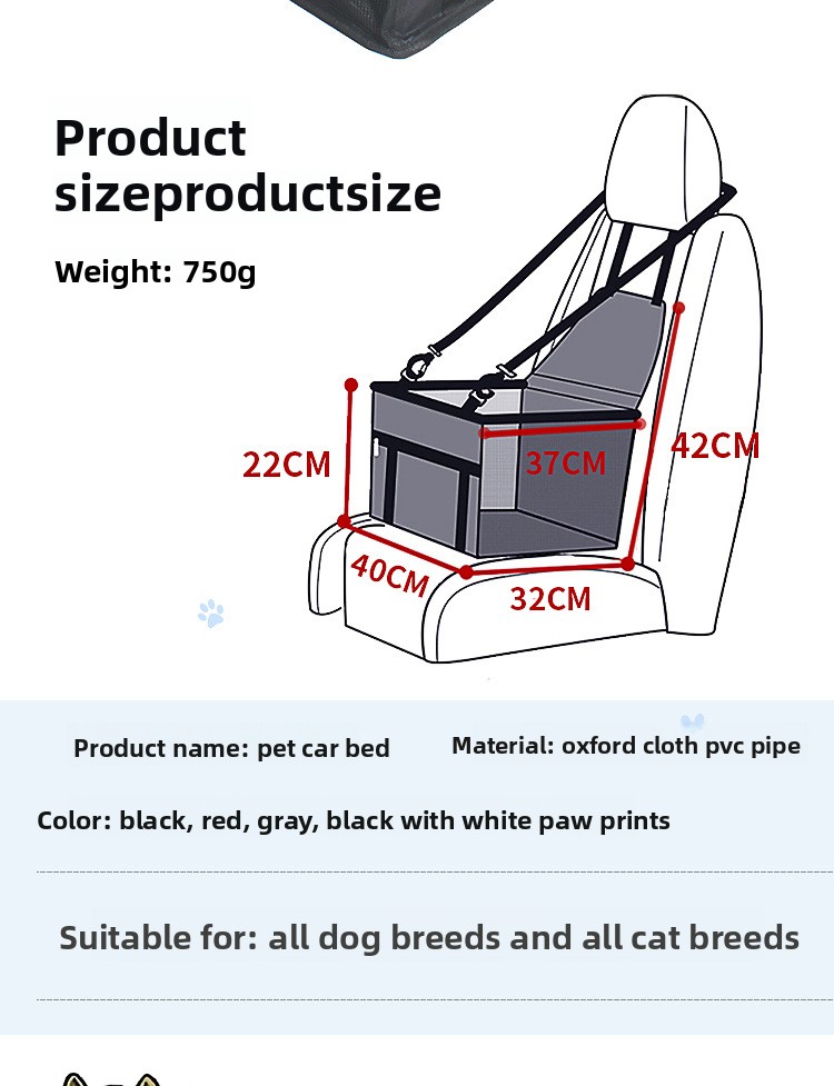 Pet Safety: Designed specifically for dogs and cats, ensuring a secure and comfortable ride in the car.
